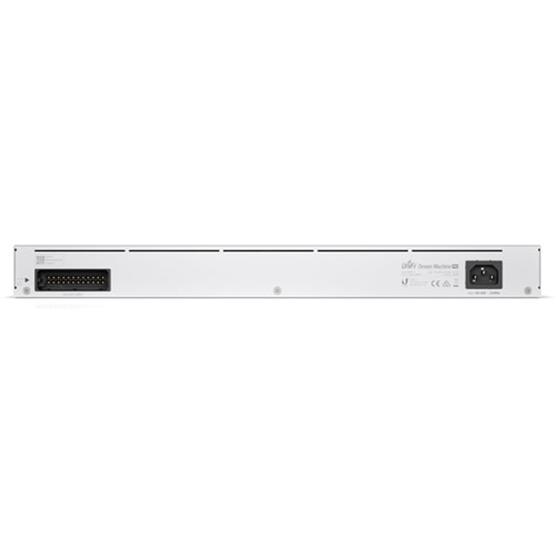 Streamline your small to medium business network with the UniFi Dream Machine Pro. The enterprise-class network device integrates a security gateway, 10G SFP+ WAN, an eight-port Gigabit switch, and 2.5" / 3.5" hard drive support into a single 1U rack appliance for UniFi Controllers. Powered by a 1.7 GHz ARM Cortex-A57 Quad-Core processor, 4GB of memory, and 16GB of onboard eMMC flash storage, the security gateway offers an intrusion detection and protection system with a 3.5 Gb/s max throughput rate. The eight-port RJ45 managed switch has a 10 Gb/s SFP+ LAN port available for network expansion and supports advanced Layer 2 features. A 1.3" touchscreen displays the device's status for easy monitoring and troubleshooting. Additionally, the integrated UniFi Protect controller automatically detects attached security cameras, and you can access up to 20 live camera feeds, network statistics, and more from a centralized interface. Video surveillance recordings may be stored onto an off-the-shelf 2.5" or 3.5" hard drive that you install into the built-in bay.